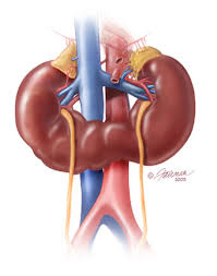 The kidneys are organs of excretion in the urinary system, located in the upper abdominal cavity. The shape is similar to kidney beans beans. The kidneys receive blood from the renal artery, which comes from the aorta. The body at rest, the kidneys receive about 1.2 liters of blood per minute. Kidney function is to maintain the volume of organic liquid, and this objective is achieved by removing, through the urine.